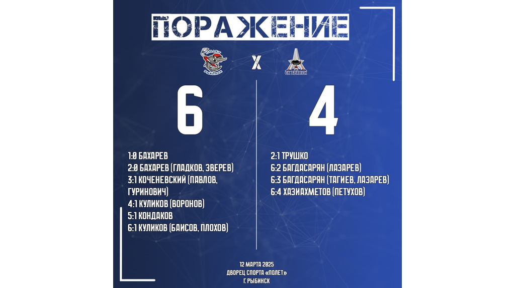 В составе «Брянска» заброшенными шайбами отметились хоккеисты Трушко, Хазиахметов и Багдасарян, оформивший дубль. Теперь «Полёт» с 47 очками готовится к плей-офф, а «Брянск» продолжит борьбу в регулярном чемпионате.