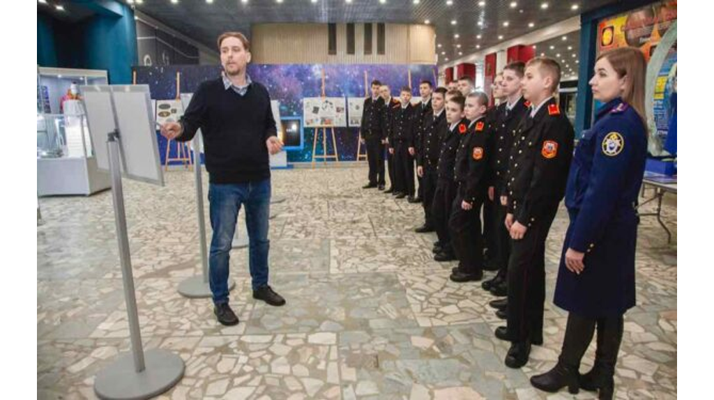 Экскурсию для кадетов провёл ведущий методист планетария Сергей Георгиевский. Школьники посетили звёздный купол планетария. Кульминацией стал мастер-класс, где ребята пробовали управлять «тросом».